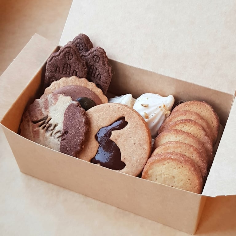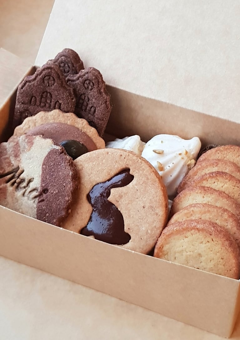 En fonction de vos envies, nous proposons des boîtes gourmandes de 12 ou 18 biscuits composées de :